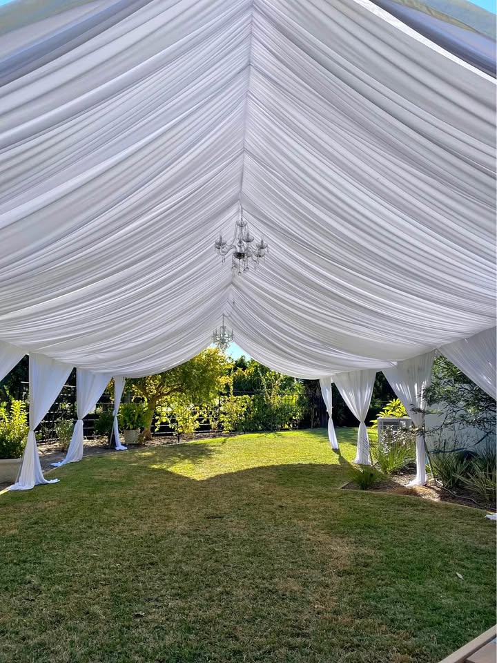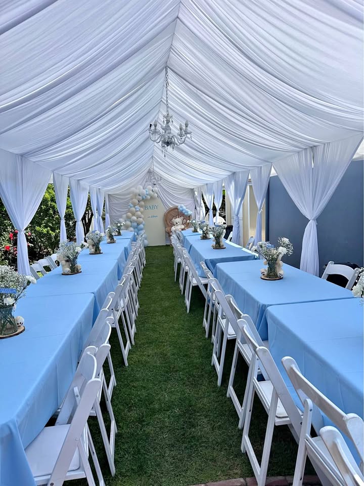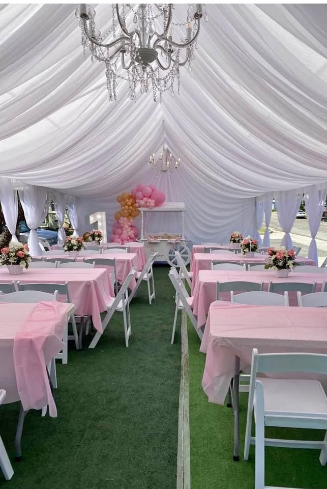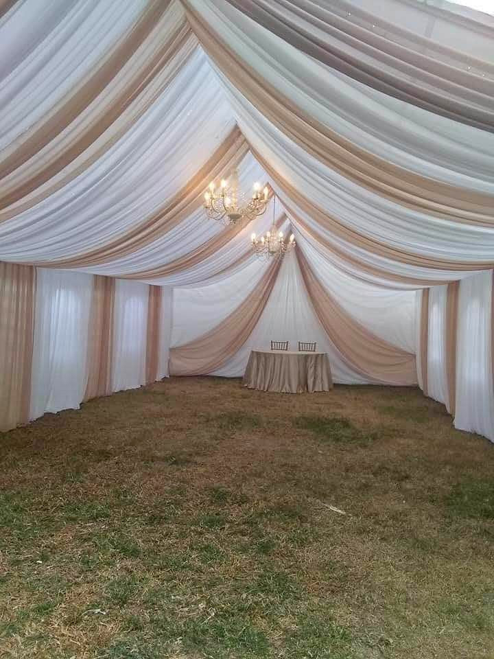 DRAPPING BLANCO PARA TU CARPA CON 5 COSTURA DE 5 PIES X 12 YARDAS TELA INTERLACK